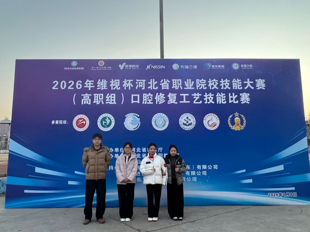 2026年1月7日至9日,2026年河北省职业院校技能大赛(高职)口腔修复工艺技能比赛在唐山成功举行,口腔系孙阳芳、王思佳、刘啸、常文晖同学荣获团体二等奖,指导教师姜威、郭靖;李笑菡、高亚旺、骆雨寒、刘晓倩同学荣获团体三等奖,指导教师王万里、王宁宁。