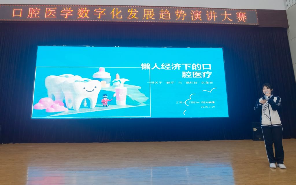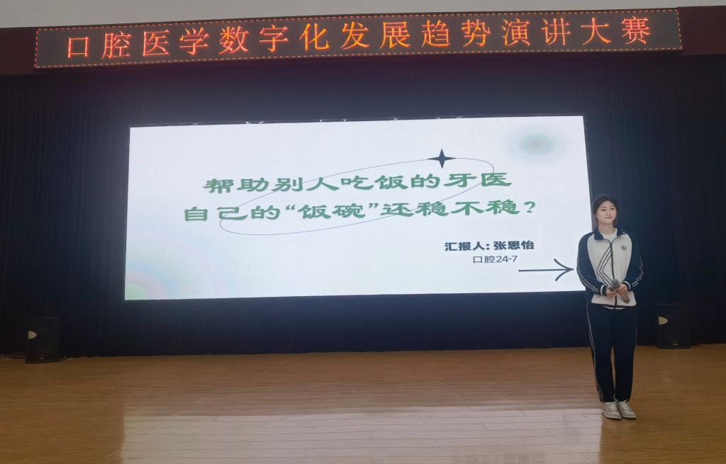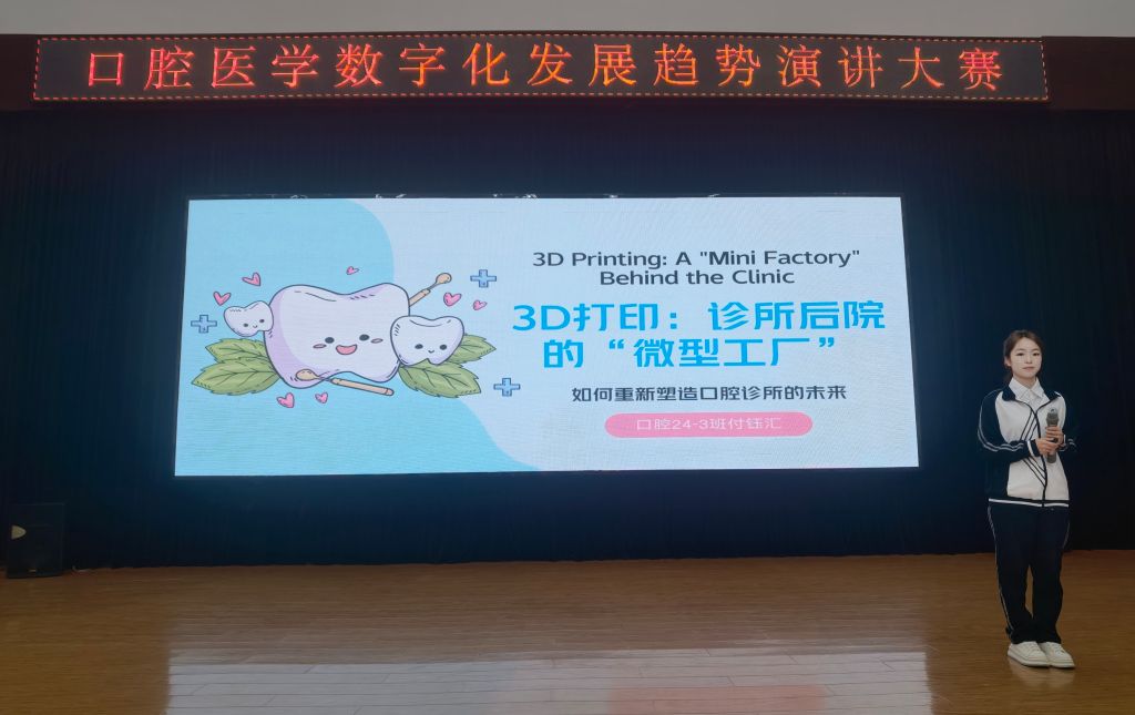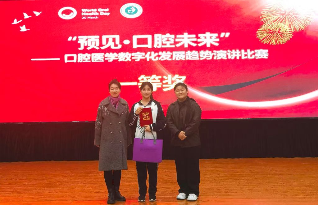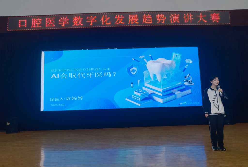 为激发学生的专业热情和创新思维,“预见口腔未来——口腔医学数字化发展趋势演讲大赛”同期精彩上演。来自口腔医学专业的参赛选手们围绕人工智能辅助诊断、口腔数字化诊疗一体化、大数据在口腔健康管理中的应用等前沿议题,展开了激情澎湃的演讲。他们或引经据典,或立足临床痛点,或畅想未来场景,充分展现了当代青年学子对口腔医学数字化发展的敏锐洞察和深刻思考。经过激烈角逐,袁婉婷同学斩获一等奖;张思怡、白佳凡两位同学荣获二等奖;靳紫嫣、付钰汇、古春颖三位同学荣获三等奖。